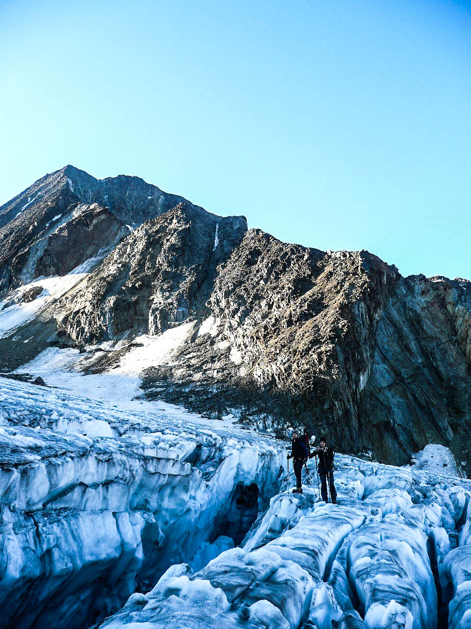 - Höhenmeter gesamt: mit Zwischenabstieg zum Gletscher ca. 1.900