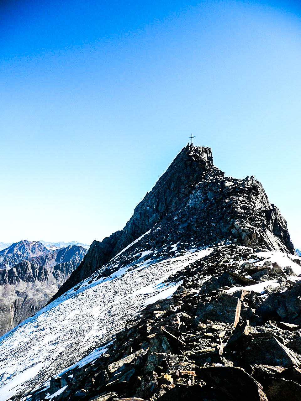 Die Hintere Schwärze (3628m) zählt zu den attraktivsten Bergen in den Ötztaler Alpen. Deutlich seltener begangen als der benachbarte Similaun, hält sie alles bereit, was mächtige ostalpine Dreitausender ausmacht: (noch) große Gletscher, weite Blicke und das Gefühl, auf einem der höchsten Berge Österreichs zu stehen.