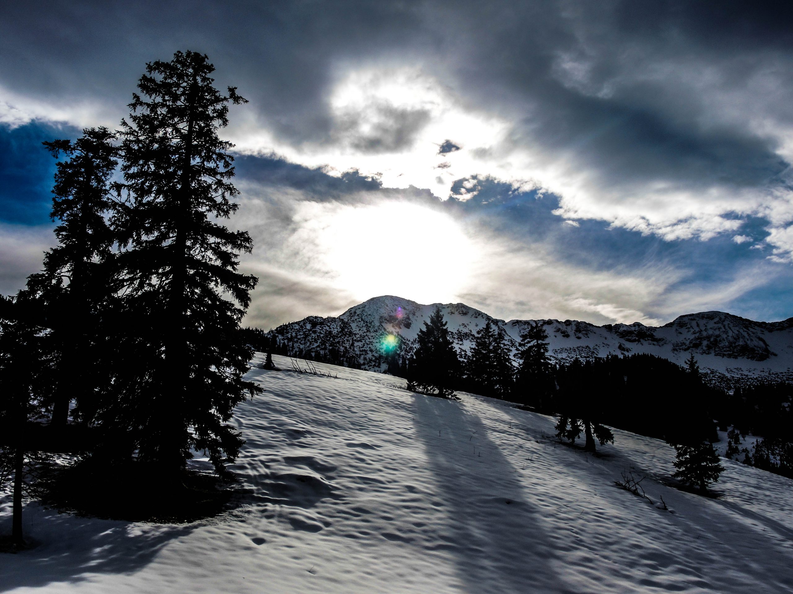 Die Teerstraße Richtung Forsthaus Aquila ist spiegelglatt, die Schneedecke neben der Straße dünn. Sie dürfte unter der 10cm-Marke liegen – ein enorm magerer Wert für dieses ansonsten so niederschlagsreiche Schneeloch. Eigentlich wollen wir heute auf den Kotzen gehen, sind jedoch so flotten Schrittes unterwegs, dass wir die Abzweigung aus Versehen rechts liegen lassen (ich war vor 20 Jahren mal auf dem Kotzen und kann mich nicht mehr genau an den Weg erinnern) und schließlich auf dem Weg zum Lerchkogel landen. Vielleicht lag es auch an der Straßenglätte, dass wir an der Abzweigung vorbeigeschlittert sind… Uns ist das aber gar nicht so unrecht, denn auf dem Lerchkogel waren wir beide noch nicht. Und außerdem: Wer will schon zum Kotzen gehen? 😉