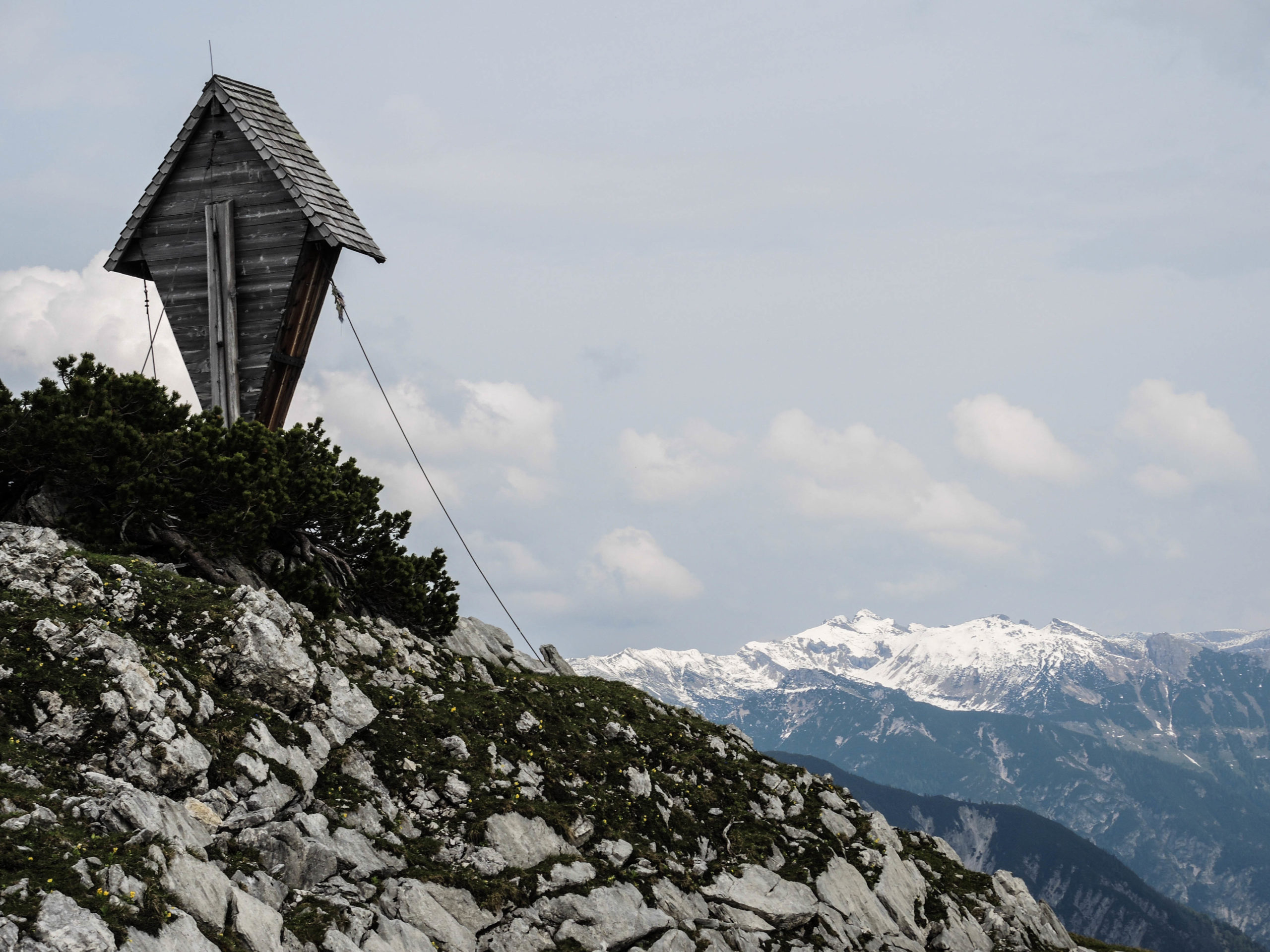 Nach der Plumsjochhütte folgt man zunächst dem Weg Richtung Montscheinspitze, ehe man bei einem Wegschild scharf links in eine Latschengasse abbiegt und recht kurzweilig über Wiesenflecken und einfaches Wandergelände dem schon von weitem sichtbaren Gipfelmarterl entgegensteigt.