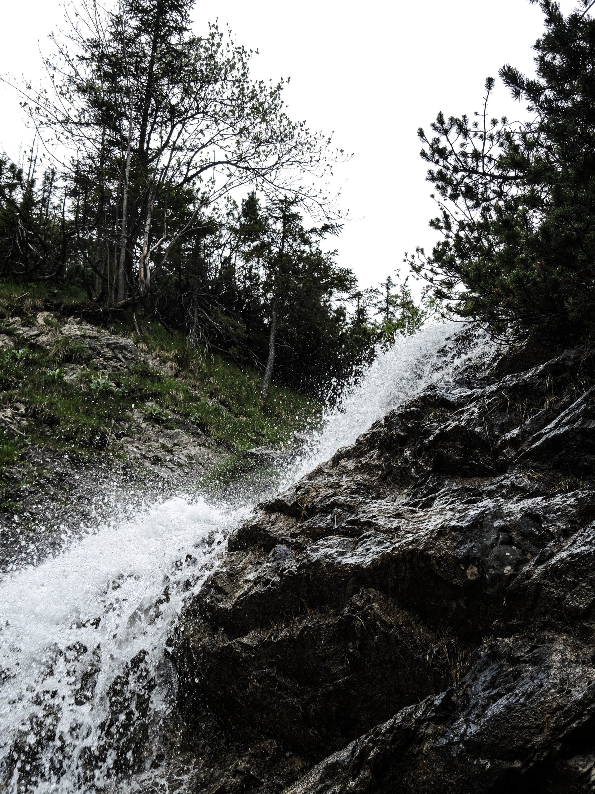 Nun führt ein abwechslungsreicher Pfad durch teils lichten Bergwald, der schließlich auf den Fahrweg zur Hütte mündet. Der Fahrweg ist teils recht flach und fordert den versierten Bergsteiger kaum, wer aber wie wir mit Kind in der Kraxe unterwegs ist, wird sich über die entspannenden Passagen freuen…