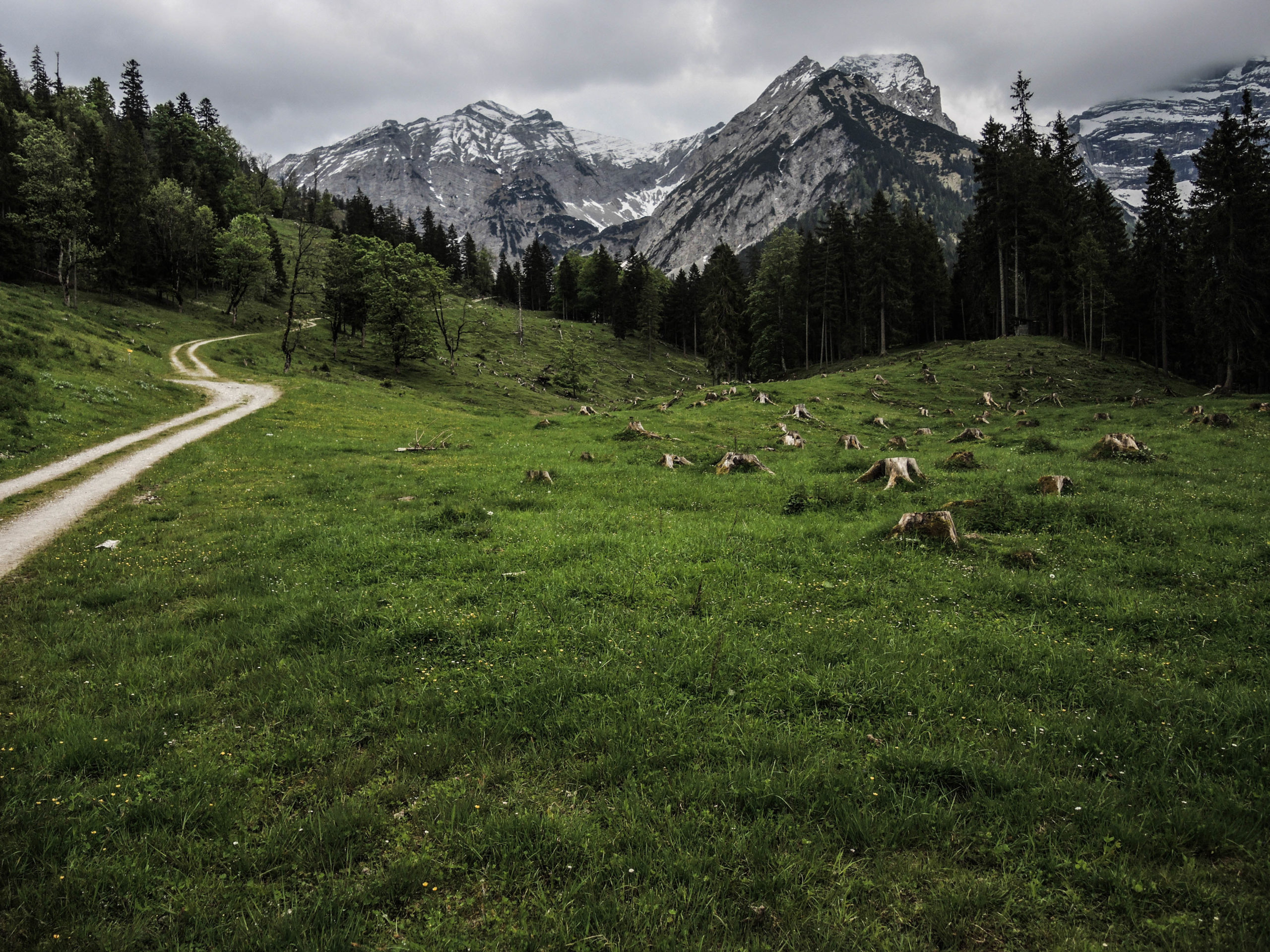 Die Tour beginnt an den auf 1077 Metern gelegenen Hagelhütten im schönen Engtal. Gleich zu Beginn wird der Rißbach überschritten, nach 10 Minuten folgt man, will man die komplette Runde gehen, dem Schild Richtung Plumsjoch / Plumsjochhütte.